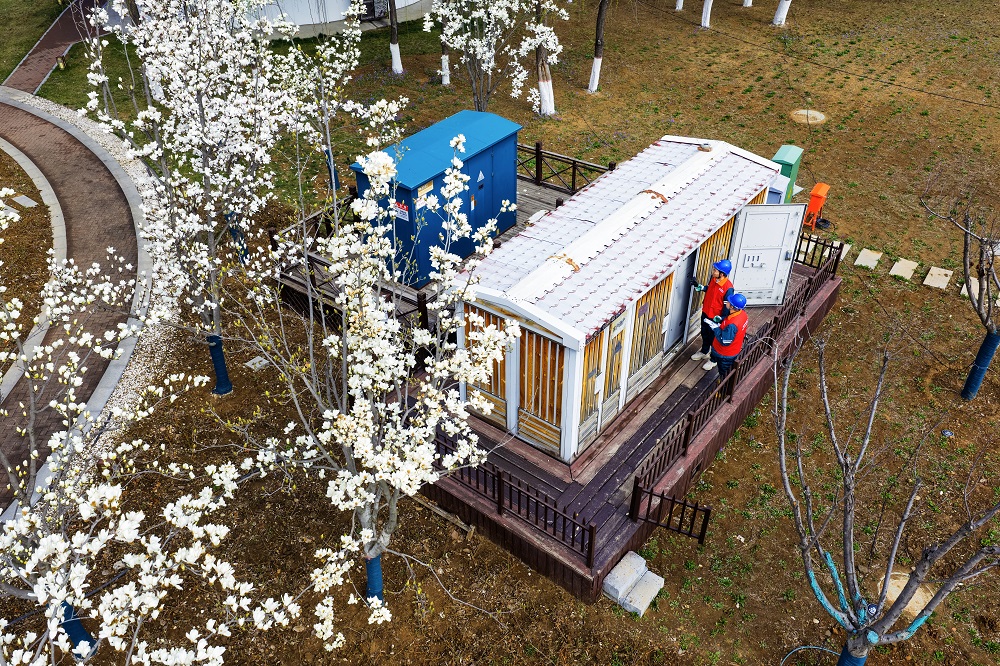 國網(wǎng)長治供電公司員工在國家城市濕地公園對配電設(shè)施進(jìn)行專項巡查,筑牢景區(qū)用電安全防線。