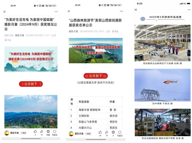 與山西攝影家協(xié)會(huì)、新華社、山西電視臺(tái)、人民攝影報(bào)等專業(yè)機(jī)構(gòu)、媒體合作,與文物、鄉(xiāng)村振興等政府部門對接,邀請利益相關(guān)方走進(jìn)保供和服務(wù)現(xiàn)場,深入鄉(xiāng)村振興、文物保護(hù)、非遺傳承一線舉辦聯(lián)合采風(fēng)活動(dòng)。邀請主流媒體記者和基層通訊員聯(lián)合組建“電約拍”微信群,實(shí)時(shí)共享拍攝需求,暢通快速投稿、發(fā)稿渠道,利用主流媒體平臺(tái)提升影像作品傳播力引導(dǎo)力影響力公信力。