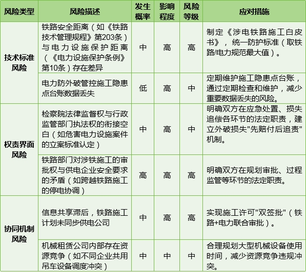 (3)強(qiáng)化協(xié)作力跨領(lǐng)域聯(lián)防聯(lián)控:由于鐵路常穿越山區(qū)、平原或城市周邊區(qū)域,與輸電線路區(qū)域高度重合,聯(lián)合大同鐵路供電部協(xié)作力形成上跨鐵路電力線路安全防護(hù)體系,共建聯(lián)勤辦公室,發(fā)現(xiàn)鐵路和電網(wǎng)附近臨時施工點(diǎn)及時互通有無,開展聯(lián)席會議、聯(lián)合巡視、聯(lián)動管控,解決臨時施工管控難度大的問題。