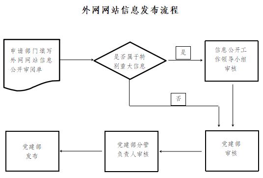 事前審核一般由信息提供部門完成,部門主要負(fù)責(zé)人為第一責(zé)任人。涉及公司外網(wǎng)網(wǎng)站主動公開的信息,由相關(guān)專業(yè)部門填寫《外網(wǎng)網(wǎng)站信息公開審閱單》(附件2),經(jīng)黨建部審核后,相關(guān)專業(yè)部門校核發(fā)布。特別重大的信息,公開前提交公司信息公開領(lǐng)導(dǎo)小組審核研究。